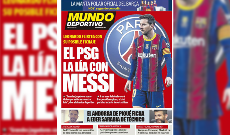 كان التركيز الأساسي للصحيفة على رغبة باريس سان جيرمان في الحصول على خدمات النجم الأرجنتيني ليونيل ميسي قائد برشلونة.