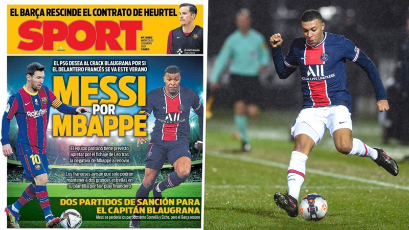 غلاف الصحيفة كان عن استهداف باريس سان جيرمان للتعاقد مع النجم الأرجنتيني ليونيل ميسي، بعد رفض كيليان مبابي للتجديد.