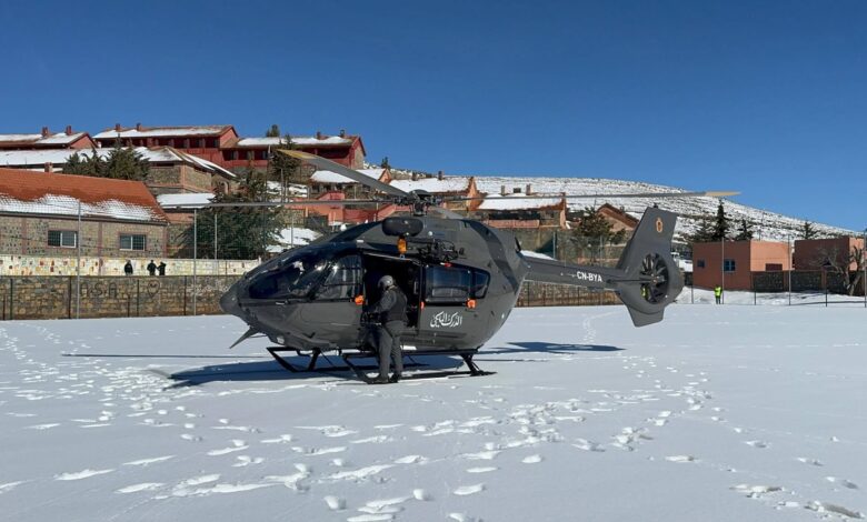 شهد إقليم أزيلال، عقب التساقطات المطرية و الثلجية الكثيفة التي ضربت جماعة زاوية أحنصال وبلغت مستويات قياسية، عملية إنسانية استثنائية تمثلت في تدخل مروحية طبية تابعة للدرك الملكي لإنقاذ خمسة أشخاص كانوا في حاجة ماسة إلى رعاية صحية عاجلة.