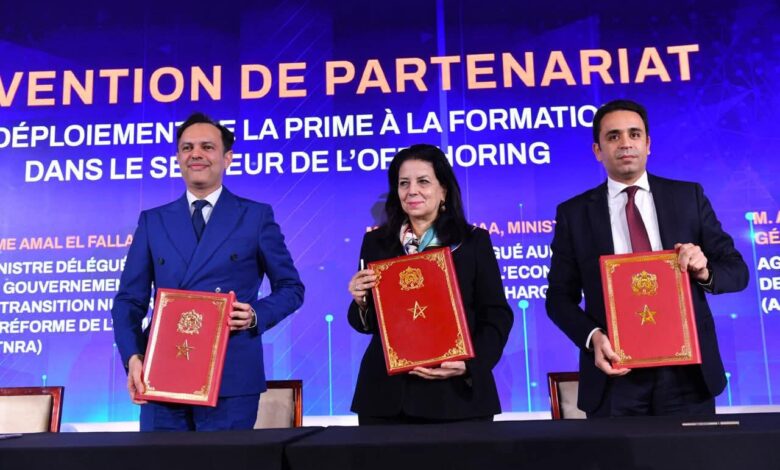 وشهد اللقاء توقيع ثلاث اتفاقيات استراتيجية، الأولى تتعلق بنشر وتفعيل منحة التكوين في قطاع الأوفشورينغ لتعزيز مهارات الكفاءات الوطنية، والثانية تخص تطوير مشروع “كازابلانكا تيك فالي” بمنطقة سيدي عثمان لتوفير بنية تحتية حديثة موجهة للخدمات الرقمية، فيما تهدف الثالثة إلى إحداث مناطق أعمال جديدة بكل من أكادير والعيون والداخلة، بما يضمن توزيعاً مجالياً متوازناً وإرساء أقطاب جهوية للتميز.