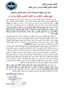 كما طالب الاتحاد المحلي بتدخل عاجل من الجهات المركزية لوقف هذا الانزلاق، و إعادة الاعتبار للعمل النقابي كركيزة أساسية في بناء التوازن الاجتماعي، مشدداً على أن التضييق على النقابيين لا يخدم إلا منطق الاحتقان و يقوض فرص الإصلاح الحقيقي.