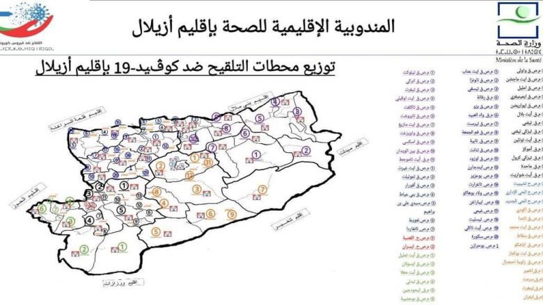 في إطار الحملة الوطنية للتلقيح ضد فيروس كورونا المستجد وتنفيدا للبرنامج الإقليمي لمندوبية الصحة بازيلال بتنسيق مع المديرية الجهوية للصحة وعمالة إقليم أزيلال والذي يهدف الى توفير ارضية تنظيمية ولوجيستيكية، حيث سيستهدف ازيد من 368000 من الساكنة التي يتجاوز سنها 17 سنة، حيث تم تحديد 75 محطة تلقيح عن طريق الوضع التابت وأزيد من 457 نقطة تلقيح عن طريق الوضع التنقل.