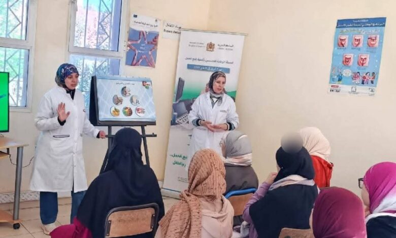 في إطار الحملة الوطنية الموجهة لتعزيز تغذية المرأة الحامل والمرضع، نظم المركز الصحي الحضري المستوى الأول بتشيبيت بمدينة أزيلال حصة تحسيسية لفائدة النساء الحوامل والمرضعات، تم خلالها تقديم إرشادات عملية حول أهمية التغذية المتوازنة، والتتبع المنتظم للحمل، والرعاية الصحية قبل وبعد الولادة.