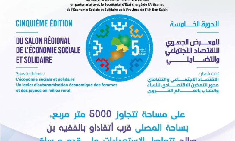 تحت الرعاية السامية لصاحب الجلالة الملك محمد السادس، تستعد مدينة الفقيه بن صالح لاحتضان فعاليات الدورة الخامسة للمعرض الجهوي للاقتصاد الاجتماعي والتضامني، خلال الفترة الممتدة من 3 إلى 10 ماي 2026، في تظاهرة اقتصادية وتنموية تروم دعم المبادرات المحلية وتعزيز دينامية الاقتصاد التضامني.