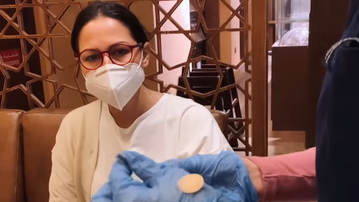 اعلنت الطباخة المغربية شميشة في فيديو نشرته عبر خاصية “الستوري” بأحد المواقع الخاصة بمشاركة الصور و الفيديوهات ،عن تلقيها لأول جرعة من اللقاح المضاد فيروس كورونا من قلب مطعمها بدبي.