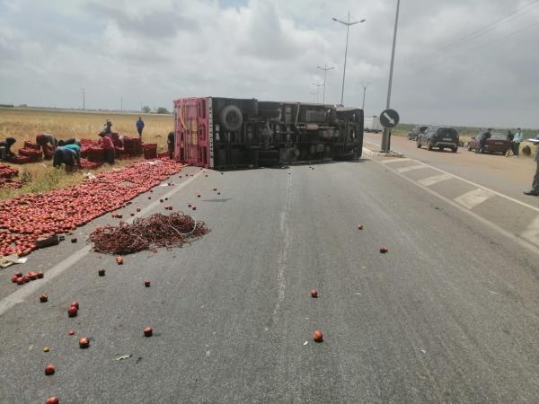 وقعت مساء يوم أمس الأحد حادثة سير وصفت بالخطيرة بطريق قصبة تادلة اقليم بني ملال، بعد انقلاب شاحنة محملة بفاكهة “الشهدية”.